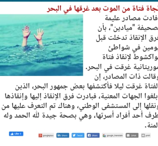 كتبت صحيفة ميادين خبرا مفاده نجاة فتاة من الغرق بعد أن كادت تموت في البحر.