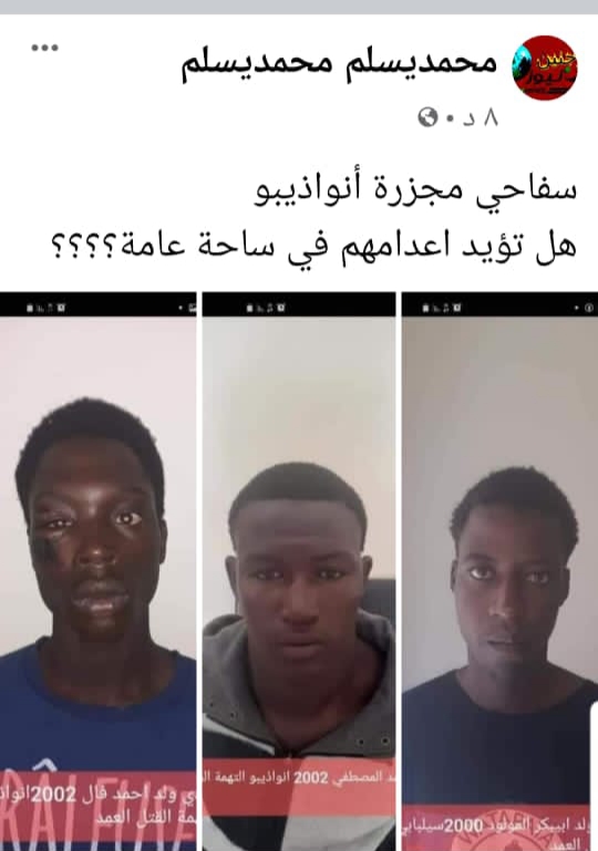 تداول نشطاء مواقع التواصل الاجتماعي صور المجرمين الثلاثة الذي ارتكبوا جرائم قتل وسطو مسلح ليلة البارحة في مدينة نواذيب.