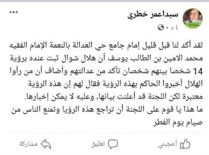 ويبقى السؤال المطروح : هل يتم إهمال شهادة 20 شاهدا أكدوا رؤيتهم للشهر ،بحجة أن اللجنة أصدرت بيانها وانتهى الأمر.؟