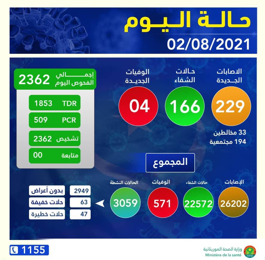 جاءت هذه الحصيلة بعد إجراء 2362 فحص من ضمنها 1853 فحص TDR و509 فحص PCR.