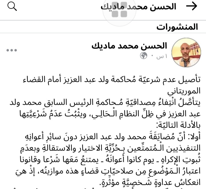 تدوينة بقلم الشيخ/ الحسن ولد محمد ماديك