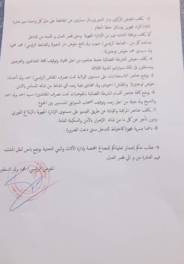 يترقب أن تتم إحالة المشتبه فيهم في قضية الصوفي ولد الشين، وعددهم عشرة أشخاص، اليوم الاثنين إلى قصر العدل للمثول أمام النيابة العامة، وذلك بعد إكمال لجنة التحقيق المشكلة حول الموضوع عملها.