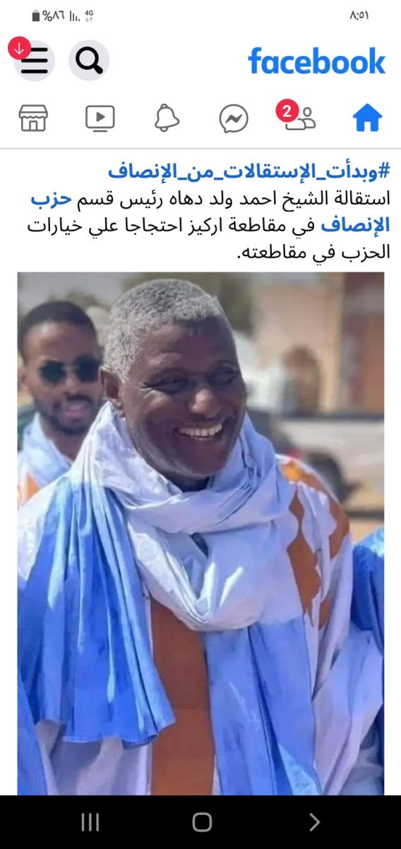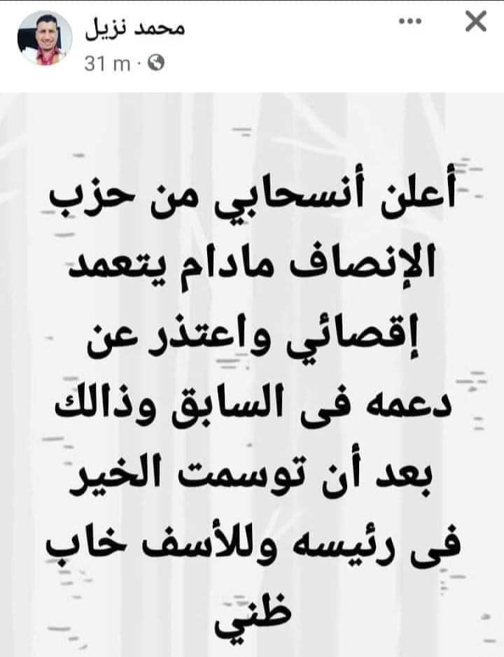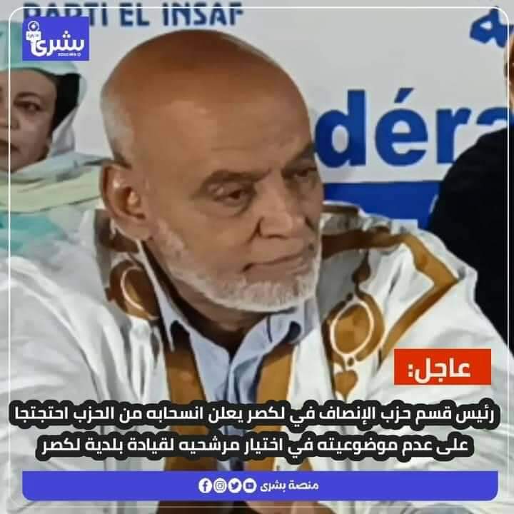 وازنة من حزب الإنصاف احتجاجا على الاقصاء الذي يقول هؤلاء المحبون انهم تعرضوا له من طرف الحزب ،حيث تم اقصاؤهم من ترشيحات الحزب وفي الوقت الذي يقول فيه البعض الاخر ان ترشيحات الحزب لم تشهد تغييرا جوهريا بإستثناء عدد من العمد والنواب محدود