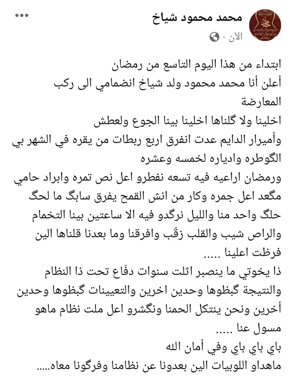 ولد شياخ برر خطوته هذه في تدوينة له على الفيسبوك ،جاء فيها :