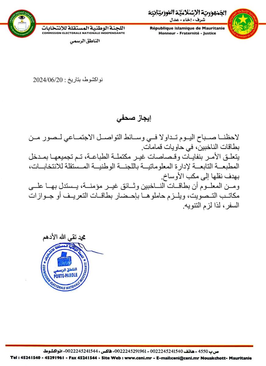 ومن المعلوم أن بطاقات الناخبين وثائق غير مؤمنة، يستدل بها على مكتب التصويت، ويلزم حاملوها بإحضار بطاقات التعريف أو جوازات السفر.