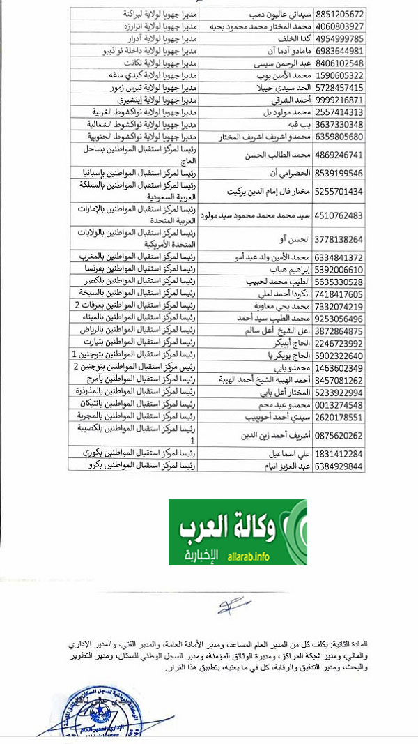 وجاء في المذكرة تعيين رؤساء المراكز في كافة الولايات وبعض المقاطعات، إضافة إلى مراكز الوكالة في السعودية والإمارات وإسبانيا والولايات المتحدة الأمريكية وفرنسا والمغرب.