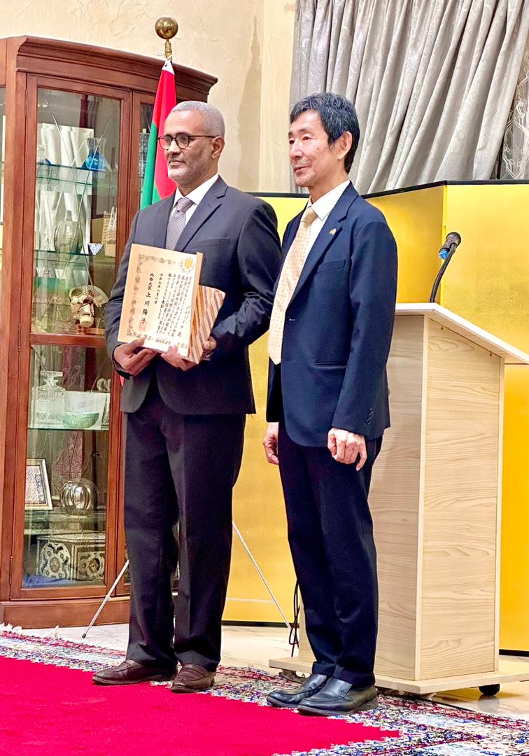 “هذا التكريم هو تتويجٌ لجهودنا المشتركة، وأتعهد بمواصلة العمل بلا كلل لتعزيز الشراكة بين موريتانيا واليابان.”