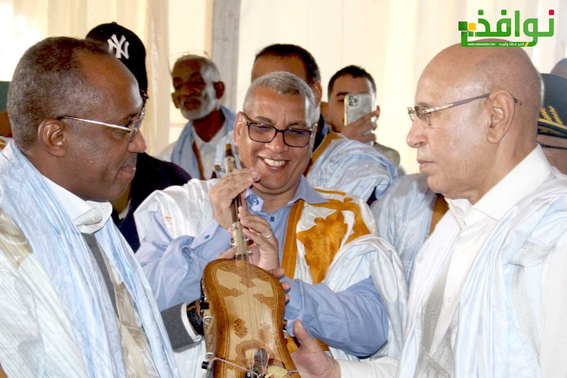 أهدى الفنان الموريتاني أماكه ولد دندني رئيس الجمهورية محمد ولد الشيخ الغزواني (تيدنينت) وهي آلة موسيقية موريتانية تقليدية.