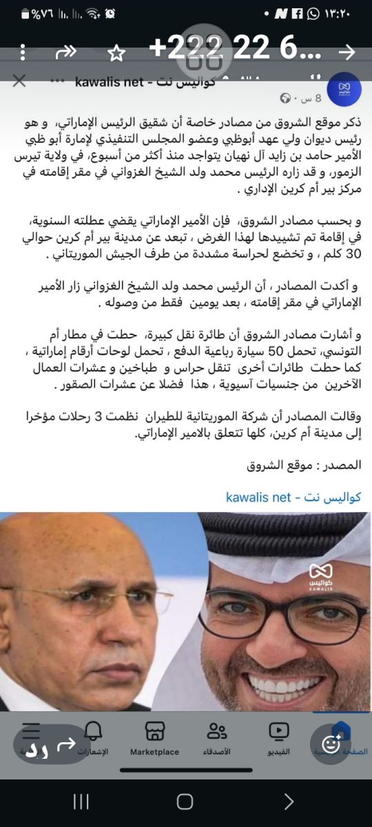 وأضافت المصادر أن الرئيس محمد ولد الشيخ الغزواني قد زار الامير الشيخ حامد بن زايد - سرا - في مقر إقامته بالقرب من مدينة "بئر أم اغرين".