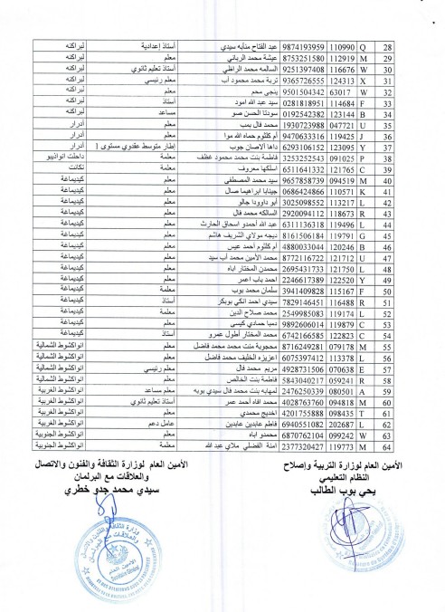 جاء ذلك في بلاغ اليوم الاثنين وقعه الأمين العام لوزارة التربية وإصلاح النظام التعليمي يحي بوب الطالب، والأمين العام لوزارة الثقافة والاتصال والعلاقات مع البرلمان سيدي محمد جدو خطري.