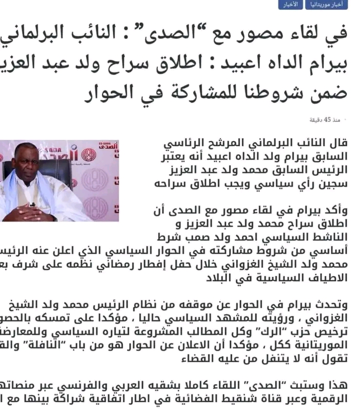 لكن اشتراطه هذه المرة إطلاق سراح ولد عبد العزيز لقبول المشاركة في الحوار المزمع تنظيمه ،سيُعقِّدُ المشهد أكثر من أي وقت مضى.